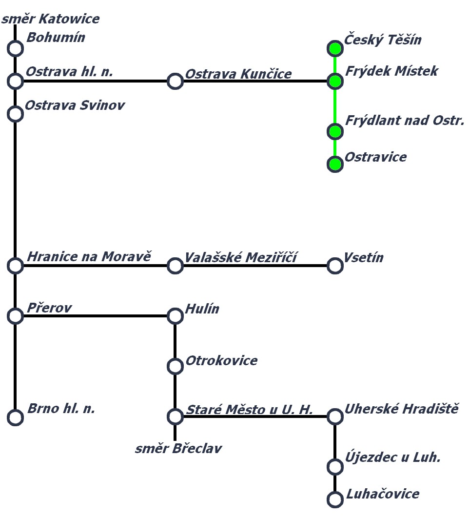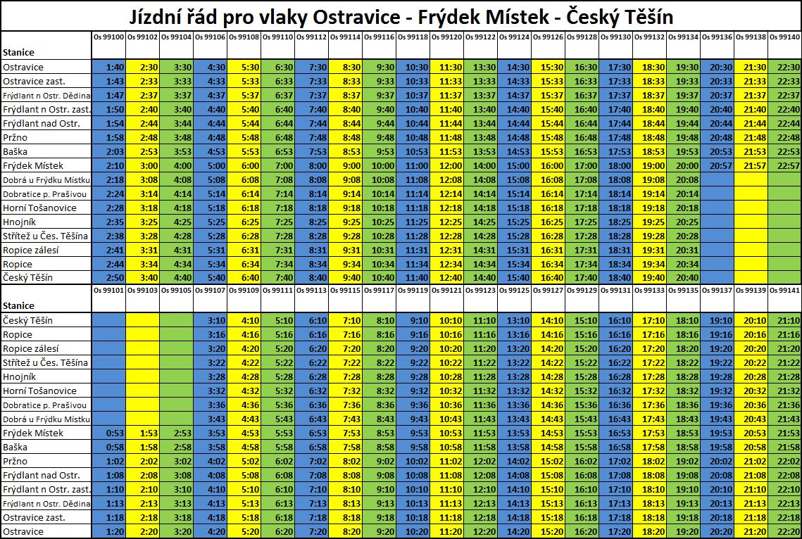 • Jízdní řád pro vlaky s trasou Ostravice - Frýdek Místek - Český Těšín a zpět.