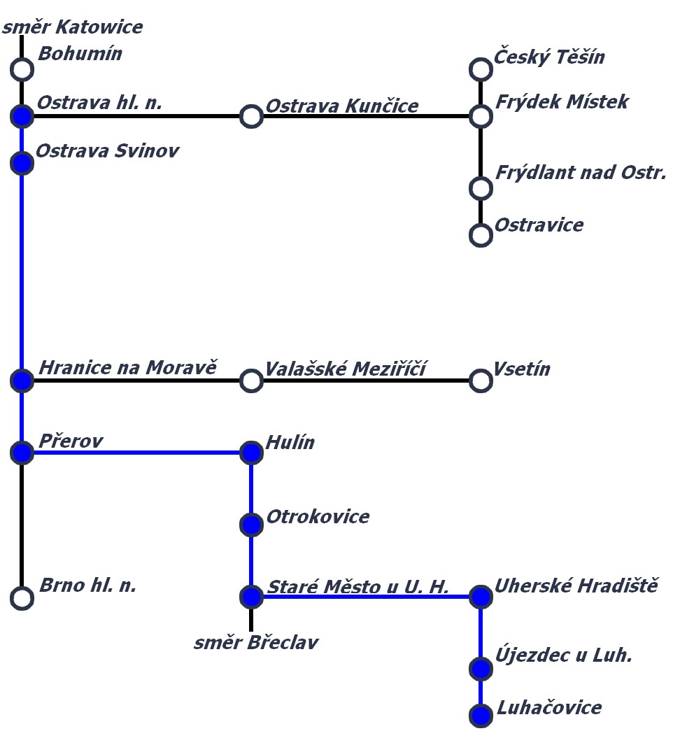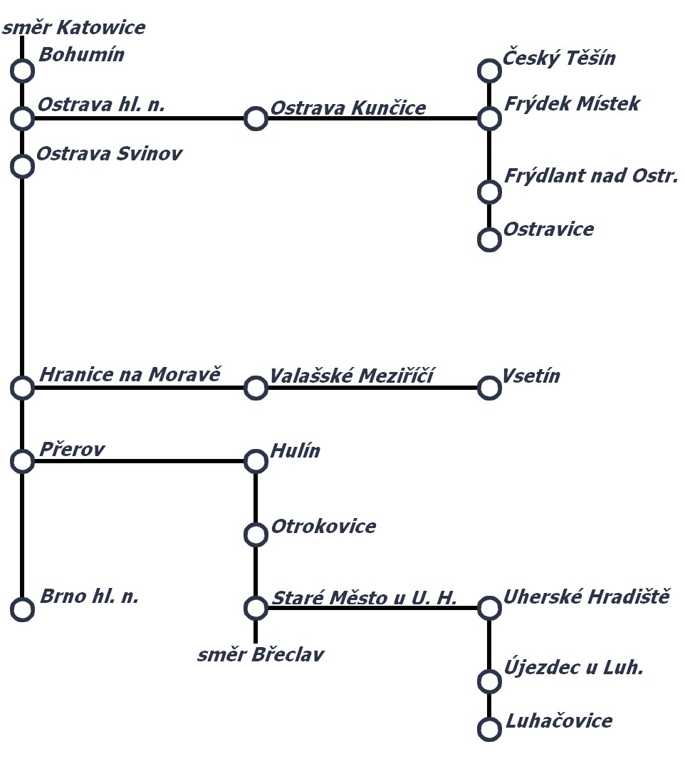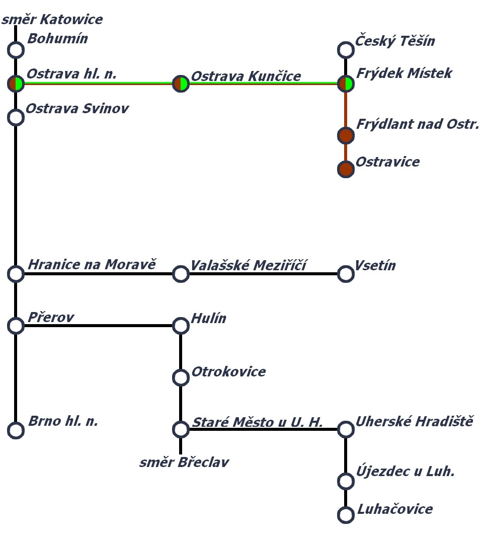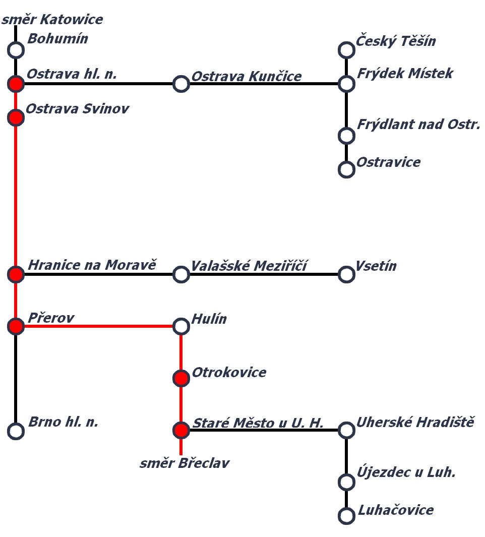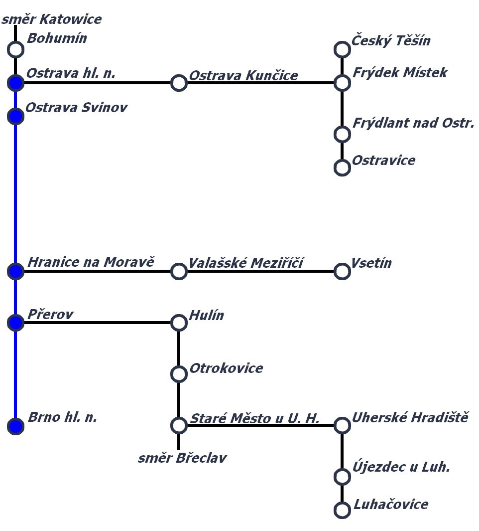 • Jízdní řád pro vlaky s trasou Ostrava hl.n. - Přerov - Brno hl.n. a zpět.