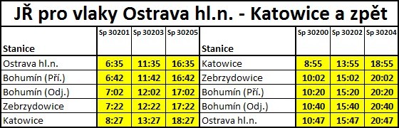 • Jízdní řád pro vlaky s trasou Ostrava hl.n. - Katowice a zpět.